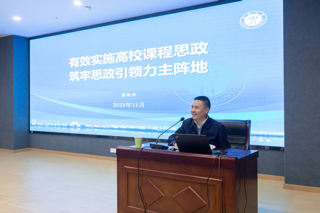 景新华从认真领悟“根本遵循”,把准课程思政建设方向;深刻认识“三个统—”,增强课程思政思想自觉;正确树立“教育三观”,担当立德树人使命责任;重点聚焦“四大要素”,提升课程思政育人实效四个方面,以习近平总书记关于思想政治教育的重要论述为指导,就课程思政建设的战略定位、目标方向、内容方法、关键主体、根本保证及为什么要开展课程思政、思政课程与课程思政的区别及内在联系、提升思政育人实效的要素与方法等内容作了深入阐述。他还结合我校在教育教学实际中存在的相关问题,从马克思主义哲学的高度剖析了问题形成的原因,提出了相关解决方案、方法和路径。