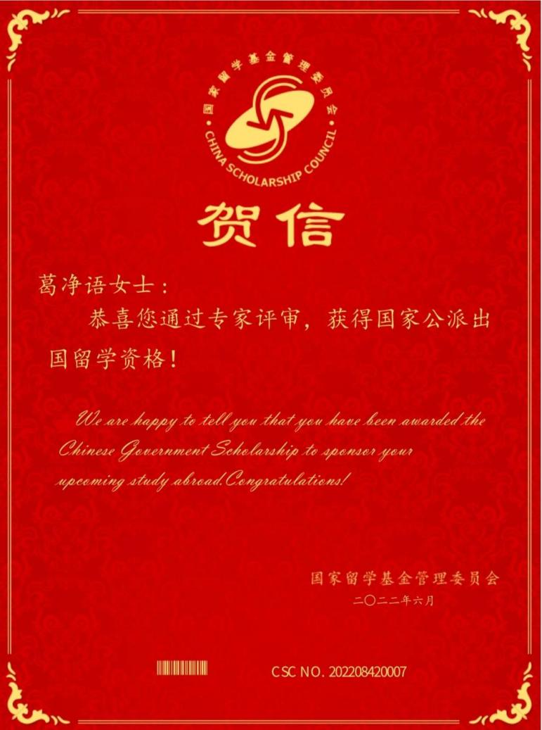 近日,从国家留学基金管理委员会传来喜讯,我校生命科学学院研究生葛净语获批2022年国家建设高水平大学公派研究生项目,将作为国家公派留学人员赴西班牙巴塞罗那自治大学攻读博士学位。这是我校首次获批国家建设高水平大学公派研究生项目。