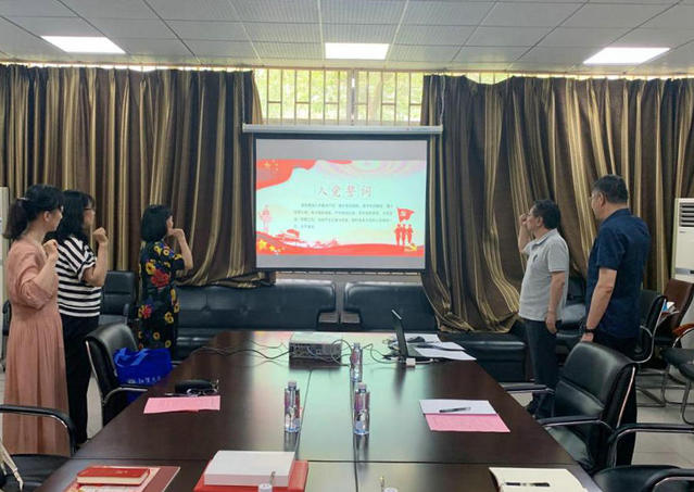 在曾新民的领誓下,全体与会党员重温了入党誓词,胡晓辉向曾新民赠送了“政治生日”贺卡和祝福。