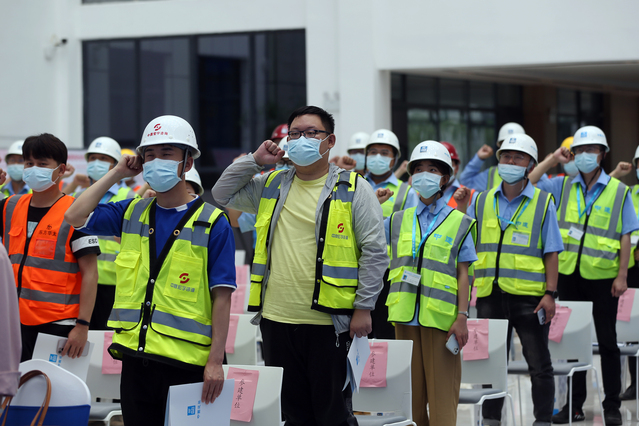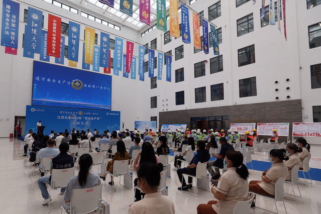 今年6月是全国第21个“安全生产月”,活动主题为“遵守安全生产法 当好第一责任人”。启动仪式上,基建与后勤管理处处长燕良滔宣读了《江汉大学2022年安全生产月活动方案》,中建七局土木公司董事长李灿作为生产方代表作了表态发言,与会参建方代表郑重宣读了安全生产誓词,并认真学习了摆放在活动现场的各类安全知识宣传展板。