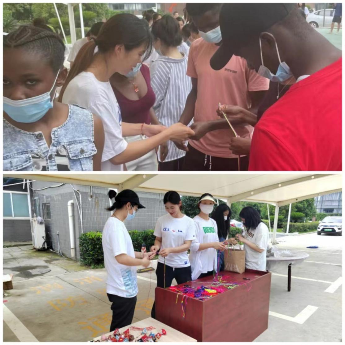 外教和国际学生体验编五彩绳、制作香囊等民俗活动,普及端午传统文化知识。