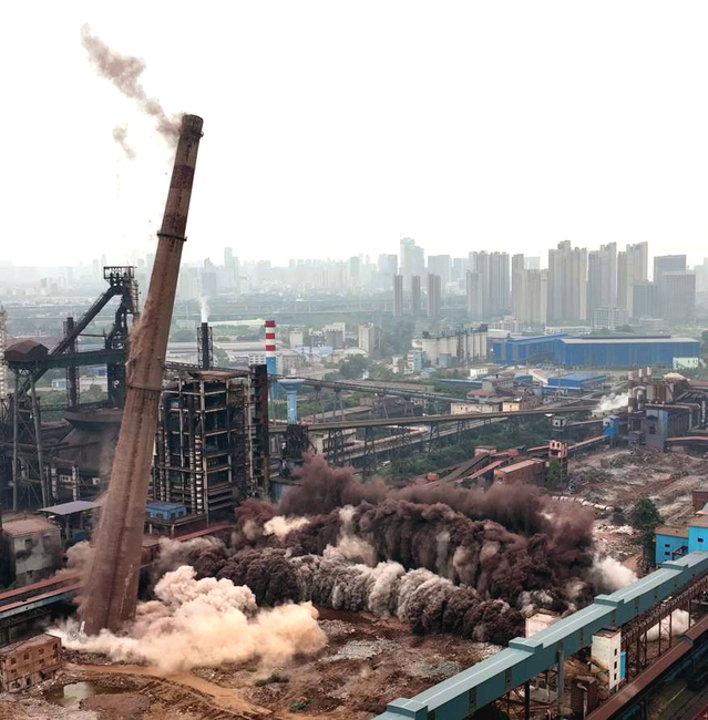 5月22日15时整,武钢烧结厂56m主厂房和180m高钢筋混凝土烟囱准时爆破,约15秒后两个拆除对象全部触地倒塌解体。此次爆破由武汉爆破公司成功实施,江汉大学精细爆破国家重点实验室参与了相关技术方案的优化设计,并依托工程开展了科研观测工作。江汉大学数字建造与爆破工程学院部分研究生现场上课并实习,实现了产学研用“一条龙”。