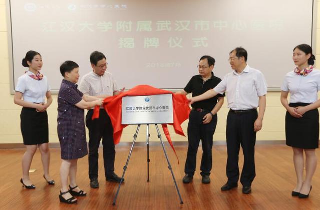 随后,市卫计委和我校领导及相关工作人员又前往武汉市中心医院后湖院区,参加了江汉大学附属武汉市中心医院的成立及揭牌仪式。