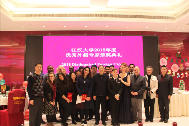 12月21日,学校举行了2018年度优秀外籍专家颁奖典礼,5名外籍专家被授予“江汉大学2018年度优秀外籍专家”称号。张幸平校长出席颁奖典礼,学校外籍专家工作相关部门和学院负责人,全体在校外籍专家及部分专家家属参加活动。李卫东副校长主持了颁奖典礼。