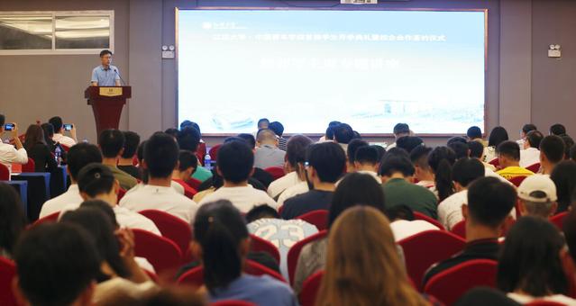 开学典礼及签约仪式后,中汽摩联合会主席詹郭军作了专题讲座,对目前我国汽车产业发展情况、赛车运动发展历史及未来发展前景等进行了详尽介绍,表达了与武汉开发区、市体育局共同做好中国赛车学院的相关保障,为学院的发展提供帮助的愿望。他对中国赛车学院的建设提出相关建议和意见,并祝愿学院办出特色,形成品牌,助力武汉汽车运动产业快速发展,打造中国汽车运动与汽车休闲产业人才的培养高地。