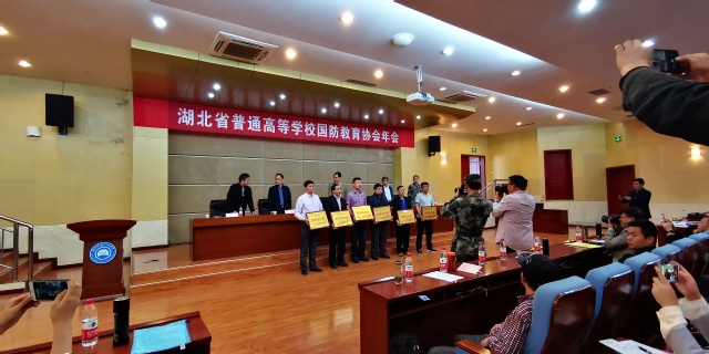 4月17-19日,2019年度全省普通高校国防教育工作会议在湖北汽车工业学院召开。会议部署了2019年度全省普通高校国防教育工作,对全省第九届普通高校国防教育科研论文评审、首届“爱我国防”大学生国防征文评审的优秀组织单位和优秀论文、征文进行了颁奖,解读了教育部、中央军委国防动员部2019年颁布的新版《普通高校军事课教学大纲》。