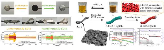 其中,论文“A robust 3D host for sodium metal anodes with excellent machinability and cycling stability”因其较大的创新性与重要的研究意义,被《Chemical Communications》选为四篇封面、封底论文之一。国际期刊封面、封底论文是主编和编委会按照严格的学术标准挑选出来的,此次《Chemical Communications》在封底刊登我校研究生的研究成果,足见其价值,也是对作者及所在单位研究能力的充分肯定。该研究工作报道了一种基于氧化铁修饰柔性碳纤维的钠金属复合电极,与传统钠金属电极相比,它具有显著提高的机械加工性能。基于该复合钠金属电极的对称电池表现出优越的循环稳定性,为发展高能量密度的钠金属电池提供了切实可行的研究方案。