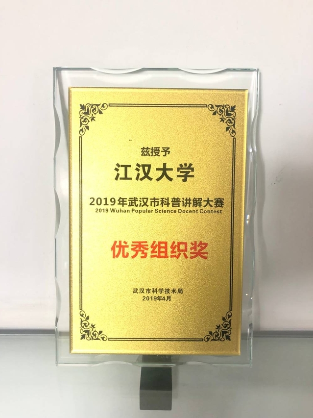近日,“2019年武汉市科普讲解大赛”在光谷创意产业基地举行。我校生命科学学院、物理与信息工程学院等学院的五位同学参加了该比赛,经过激烈的角逐,最终获得优秀奖1名,优秀选手奖4名,学校荣获优秀组织奖。