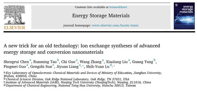 陈盛锐同学以第一作者身份在材料科学领域国际著名学术期刊《Energy Storage Materials》(影响因子17.789)上发表综述性论文《A new trick for an old technology: Ion exchange syntheses of advanced energy storage and conversion nanomaterials》。江汉大学为第一作者单位,我校化环学院梁济元老师和台湾学者吕世源教授为通讯作者。《Energy Storage Materials》是Elsevier出版社旗下的顶级期刊,在材料科学领域具有权威影响力。