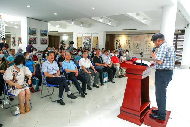 离退休工作处处长史彬主持开幕式。外事处处长、国际教育学院院长刘晓明,退休老教授刘正国先后分享了创作感悟。他们表示,作为一名党员、一名学校发展的参与者与见证者,理当要挥笔泼墨书写新篇章,将深情祝福化作诗文,以书画艺术的形式表达普通党员对党的崇敬之心,对学校的美好希冀。