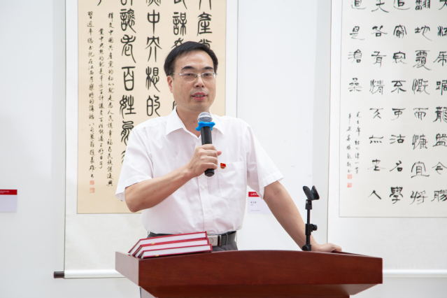 副校长陈功江在致辞中指出,此次作品展展示了江大人的家国情怀,学校的发展是每一代江大人共同努力的成果。广大师生以书言志,以画寄情,从不同角度抒发了对党、对祖国、对学校的热爱,反映了国家及学校改革发展的成就,展现出江大人的风采。
