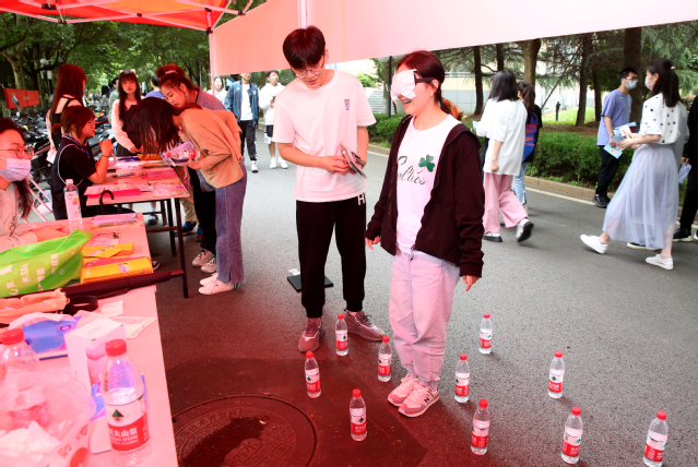 5月20日下午,教学楼J10内外热闹非凡,江汉大学心理健康教育中心主办的心理健康嘉年华活动吸引了众多前来参与活动的学生。每个学院都在教学楼J10外的林荫道上摆设了心理小游戏展台,教学楼J10内,心理健康教育中心的一些活动室也在当天向学生们开放,让学生们体验先进的心理咨询辅助仪器。