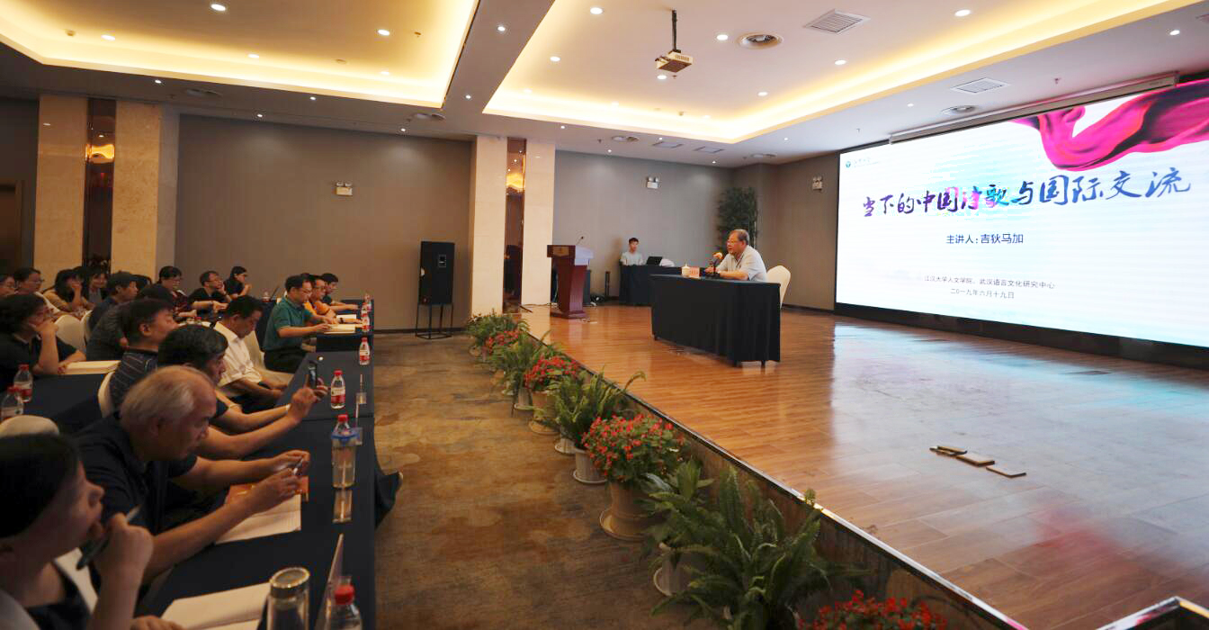 6月19日,中国作协副主席、著名诗人吉狄马加受邀在江汉大学学术交流中心进行了一场题为“当下的中国诗歌与国际交流”的讲座。讲座由校党委书记、诗人李强主持,副校长毛卉以及人文学院师生参加聆听了讲座。