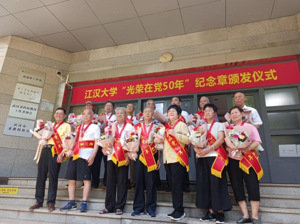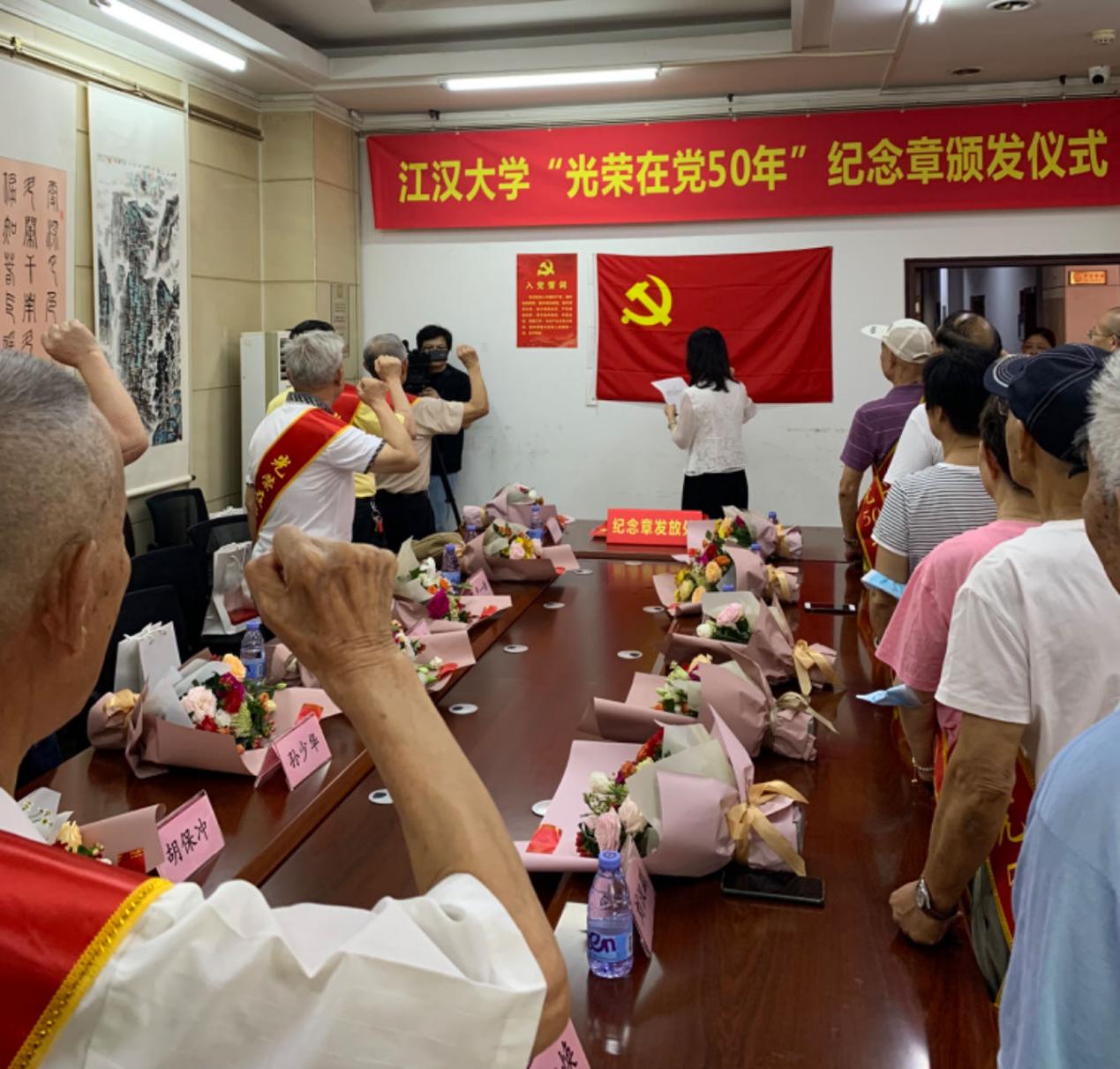 6月28日,中共江汉大学离退休委员会举行江汉大学“光荣在党50年”纪念章颁发仪式,代表学校党委向获得纪念章的老党员致以热烈祝贺和崇高敬意,充分肯定老党员们用青春年华和毕生精力,默默无闻为党的教育事业作出的倾情奉献。