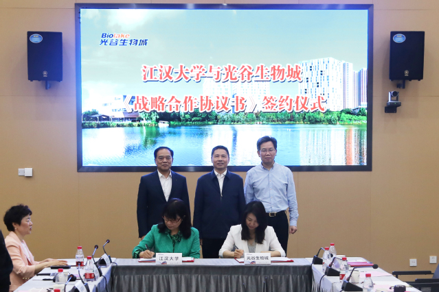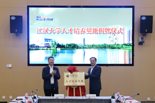 为进一步了解企业需求,拓宽毕业生就业渠道,推动产学研深度融合,5月26日,校长景新华带领相关部门及学院负责人走访调研光谷生物城,双方就进一步深化校企合作沟通交流举行座谈,签署战略合作协议,并共同为“江汉大学人才培养基地”揭牌。
