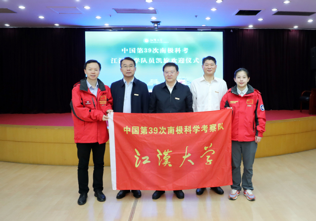 4月13日上午,学校举行仪式欢迎首次代表学校参加中国第39次南极科学考察的环境与健康学院教师潘钰载誉凯旋。