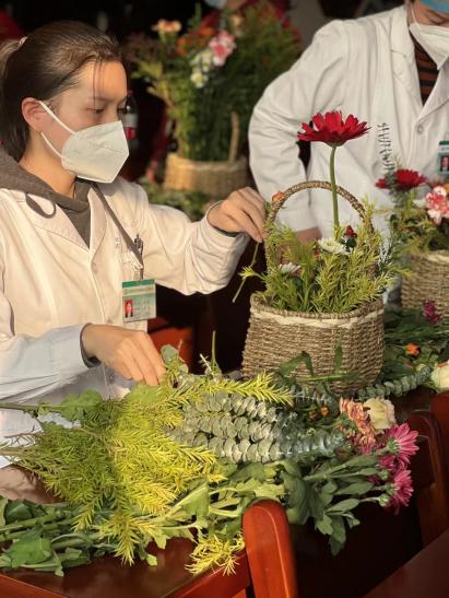 在老师和园艺协会同学的专业指导下,社区人员进行了花艺制作。近1个小时的创作过程中,社区居民热情高涨,积极参与,充分发挥想象力和创造力,创制出一件件精美作品,既有充满生机的绿意,五彩缤纷的斑斓,也有古色古香的中式花艺。