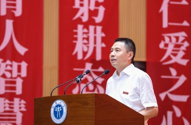 覃道明代表学校向全校老师致以节日的祝福,向受表彰的老师致以崇高的敬意,向新入职的老师表示诚挚的欢迎。他强调,教育是国之大计、党之大计。高等教育是教育强国建设的龙头,作为新时代的高校教师,在践履国家责任与弘道授业使命担当中,更应该思考和回答好“为何为师”“何以为师”这个“教师之问”“教育之问”。中国特有的教育家精神,是习近平总书记立足强国建设、民族复兴伟业,对“四有”好老师、“四个引路人”“四个相统一”“大先生”等重要论述的丰富和拓展,是对中华民族尊师重道优良传统的创造性转化和创新性发展,闪耀着新时代的耀眼光芒。厚植教育家精神,争做教育家型好老师,应该成为每个老师的孜孜追求。