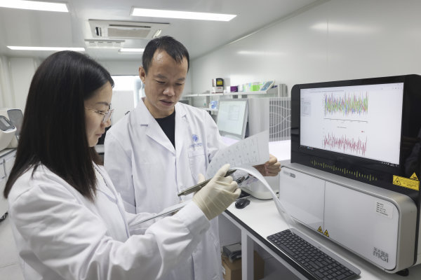 彭海教授和学生研讨植物DNA测序记录。记者胡冬冬 摄
