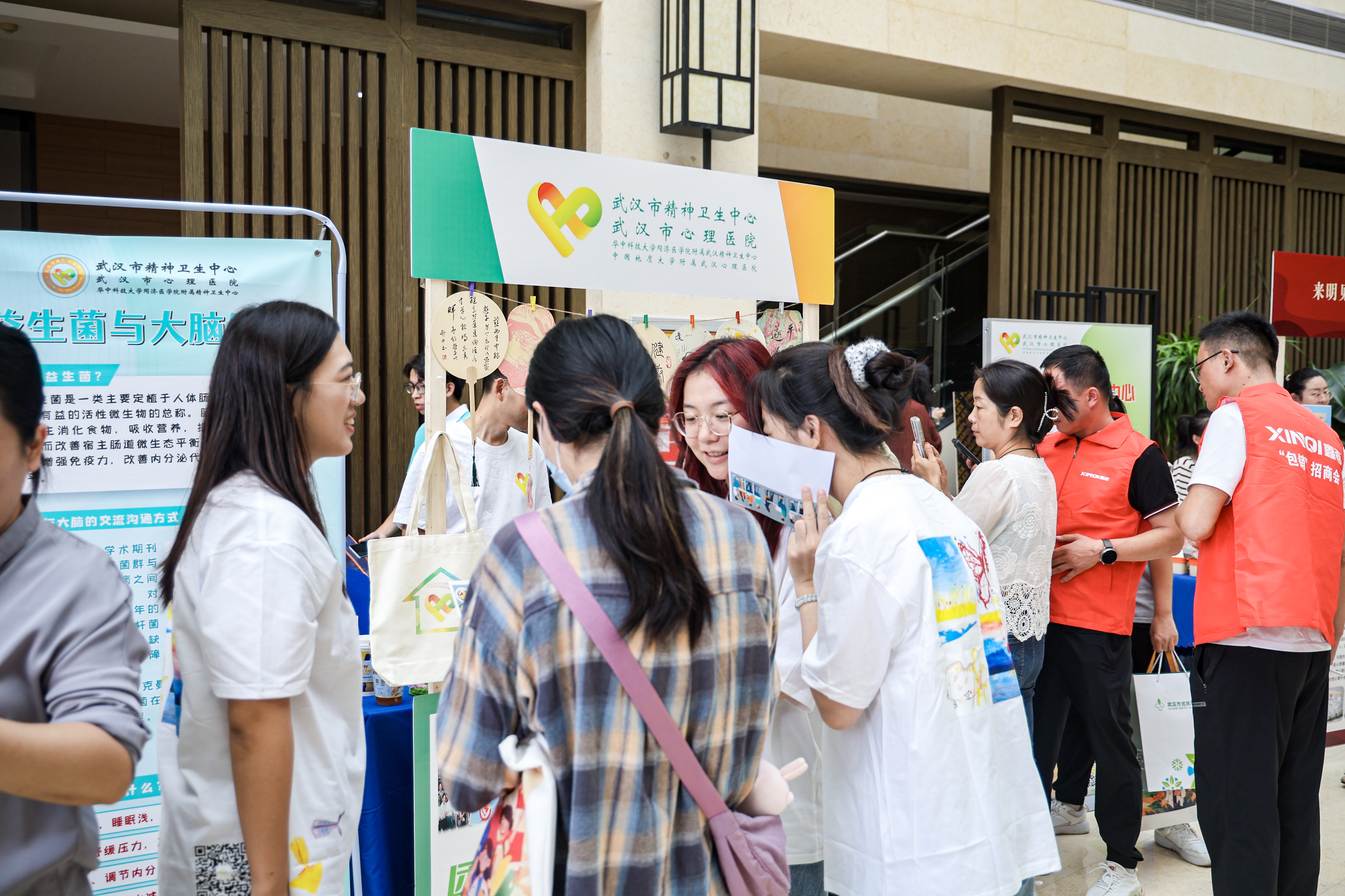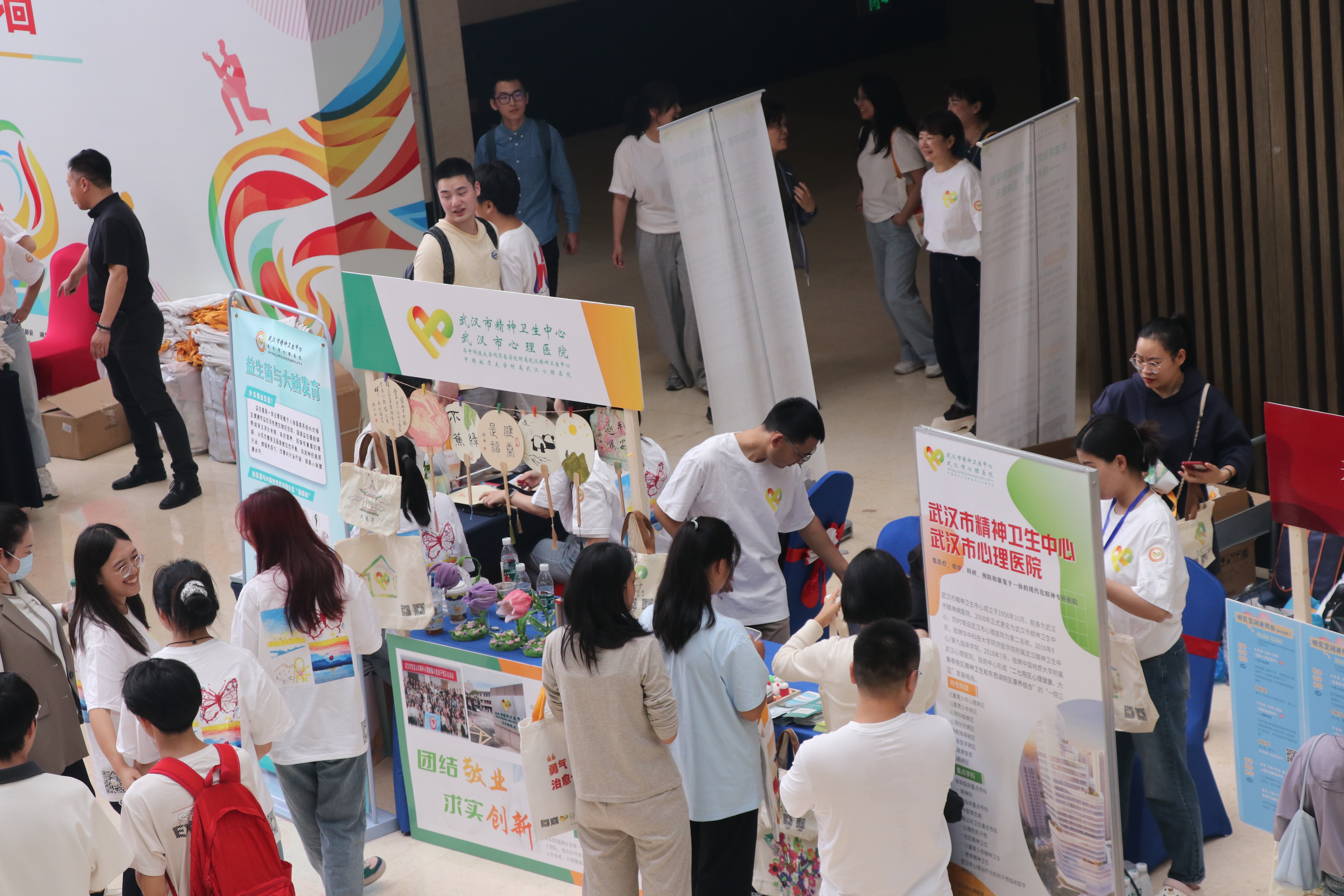 在主会场外,由武汉市精神卫生中心、湖北东方明见心理健康研究所、武汉市武东医院等单位参与,以心理健康为主题的科普展览、精神障碍康复者手工作品义卖也在如火如荼进行着。