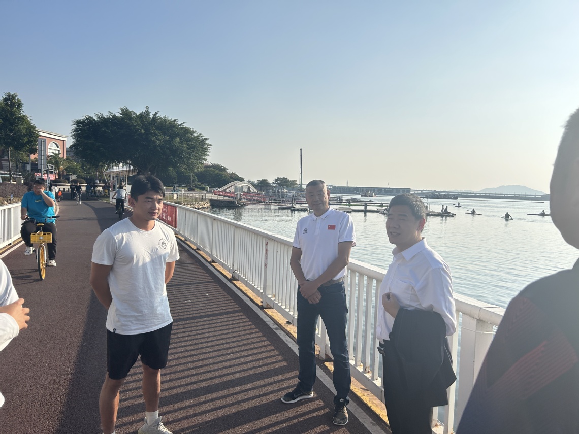 12月6日,李卫东一行前往厦门市体育运动学校,参观了水上运动中心、射击馆、重竞技馆。在水上运动中心现场,李卫东看望了在2024年亚洲桨板锦标赛获得冠军的我校学子叶贵桐,并对其表示了祝贺。他说,叶贵桐同学以昂扬的斗志、精湛的技术取得了优异成绩,为国家赢得了荣誉,为学校增添了光彩,为广大学子树立了榜样。