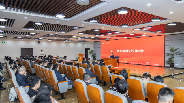景新华在讲话中充分肯定了学校2024年招生就业工作取得的成绩。他指出,招生是人才培养的起点,就业是人才培养的重要节点;生源质量是提高人才培养质量的重要基础,高质量就业是人才培养质量的重要指标。当前招生就业工作仍面临提高生源质量、稳定高质量就业、推进招生就业工作改革创新等挑战,要通过增强忧患意识、创新意识和担当意识来化解这些矛盾。就如何做好2025工作,景新华对广大教师提出具体要求:首先,要强化政治意识,增强招生就业工作使命感。要围绕教育强国的根本目标,提升工作站位,满足国家对高质量人才的需求和人民群众对高质量教育的要求;招生就业工作要融入学校办学全过程,建立人才培养的社会标准,实现人才培养与区域经济的深度融合。其次,要增强竞争意识,确保生源质量稳步提升。要做强学校品牌,发挥地区优势,扩大社会影响力;加强专业建设与调整,把握发展趋势,人才培养方案与社会需求相匹配,注重内涵建设和特色建设。第三,要强化系统意识,实现供需匹配量质齐升。要树立招生、培养、就业三位一体的系统模式,建立“学校统筹、学院主战、全员参与”的协同机制,形成全校齐抓共管的良好局面;要充分利用就业信息,发挥专业教师作用,为学生就业提供专业指导。第四,要强化数智思维,构建智慧工作新模式。要充分利用大数据,应用成熟的人工智能技术,提升工作能力和效率,推动招生就业工作数字化转型。第五,要强化责任意识,压实全员责任链条。学校要为教师提供更好的服务保障,学院要将招生、培养、就业全过程融入教学实践,从课程实施和教学过程中关注学生就业和成长问题。他强调,做好2025年招生就业工作,责任重大,使命光荣,广大教职工要以更加饱满的热情、更加务实的作风、更加有力的措施,凝心聚力、攻坚克难,实现高质量的生源和高水平的就业,推动学校高质量发展。