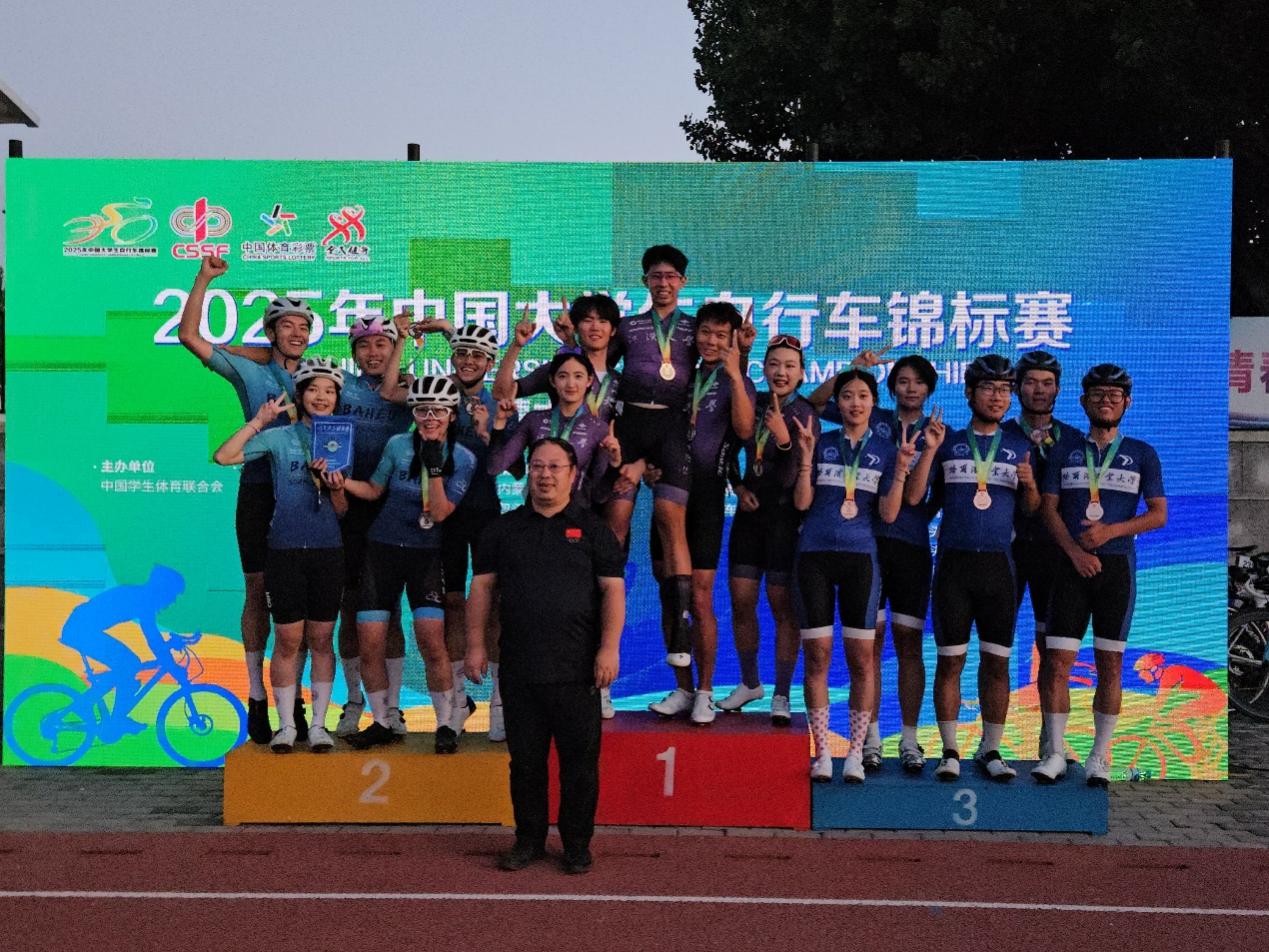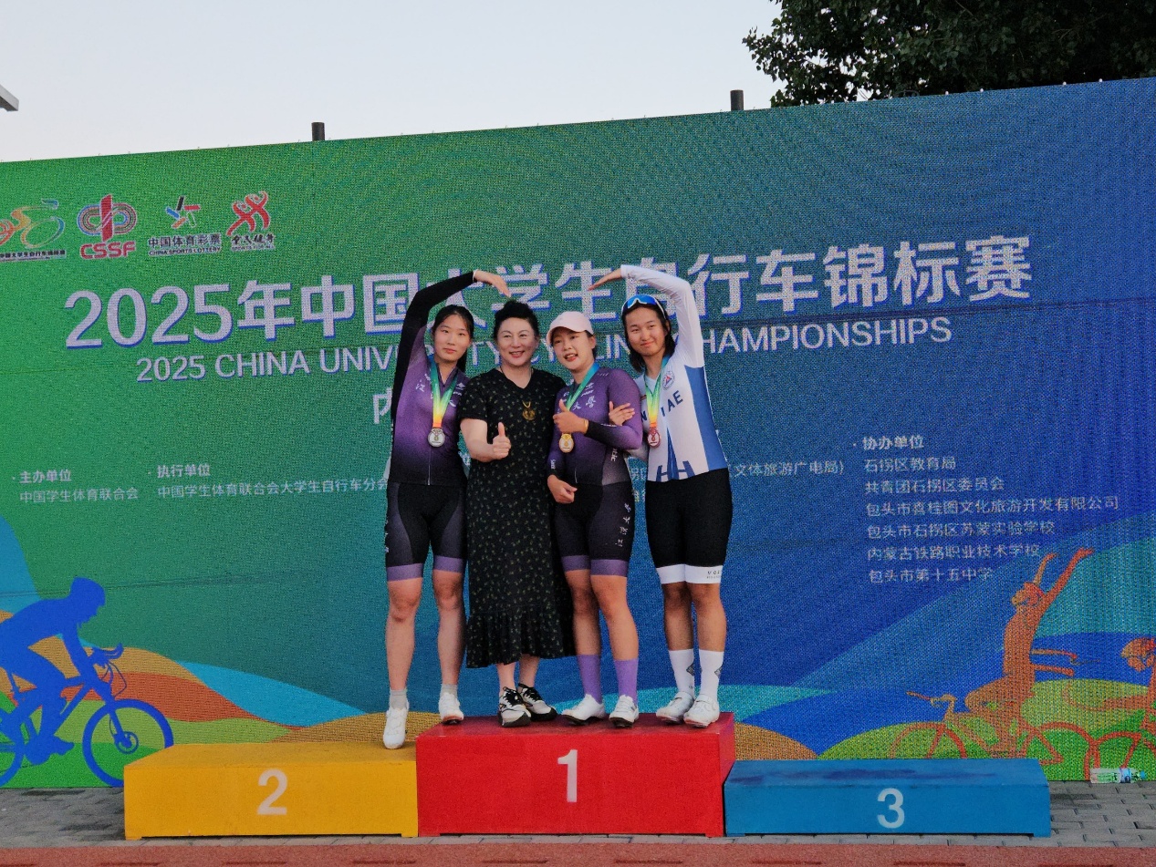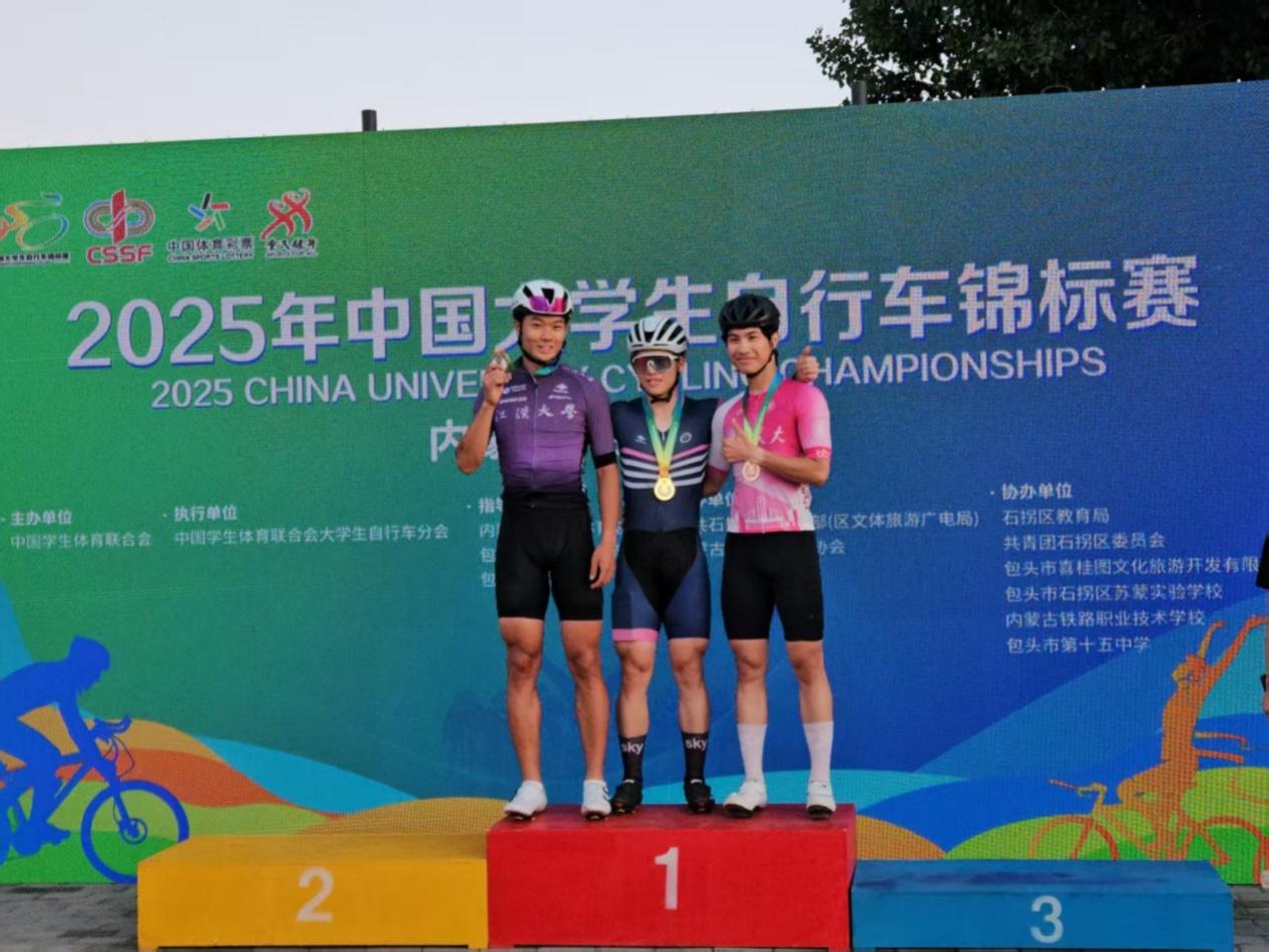 江大新闻网讯 2025年中国大学生自行车锦标赛于7月20日至7月23日在内蒙古自治区包头市激情开赛。江汉大学代表队派出17名队员参加了多个项目的角逐。经过数日鏖战,江汉健儿发挥出色,最终勇夺4枚金牌、5枚银牌、1枚铜牌,取得了竞技成绩与精神文明的双丰收,充分展现了学校自行车运动的强劲实力与学子风采。