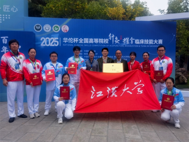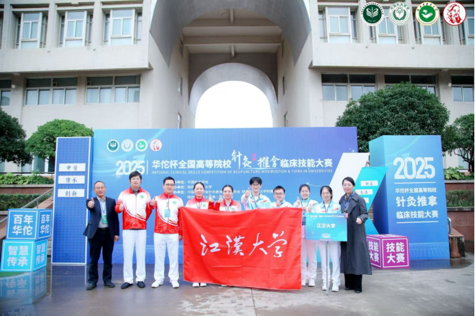 江大新闻网讯 10月16日至19日,由中国针灸学会主办、陕西中医药大学承办的“2025华佗杯全国高等院校针灸推拿临床技能大赛”在陕西中医药大学南校区隆重举行。面对来自全国49所高校的600余名优秀选手,我校参赛师生再次斩获团体一等奖,并荣获个人单项二等奖2项、个人单项三等奖2项的佳绩,连续2次进入全国第一方阵,蝉联综合性院校第一名。