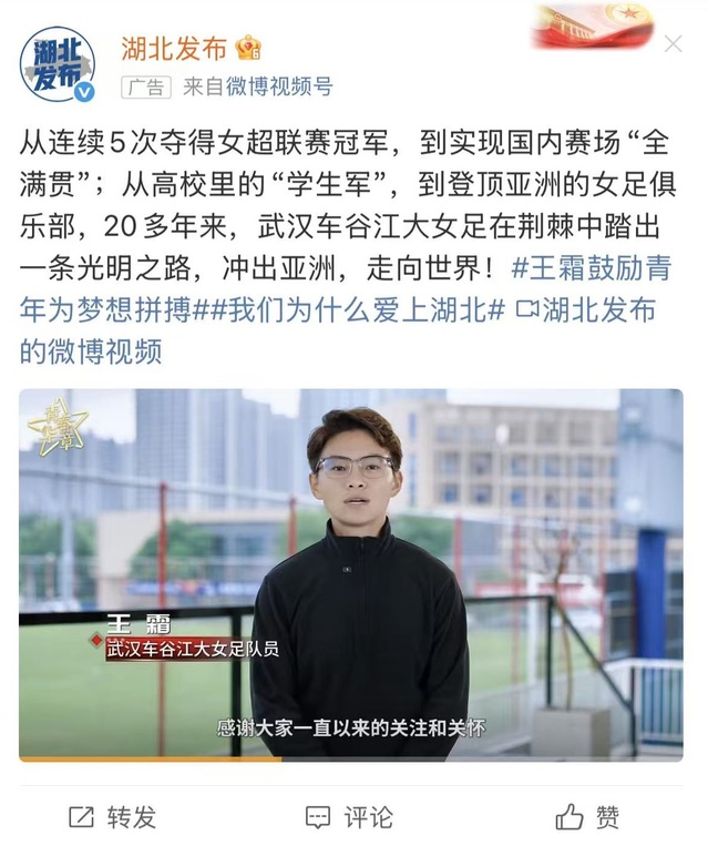 王霜鼓励青年为梦想拼搏
