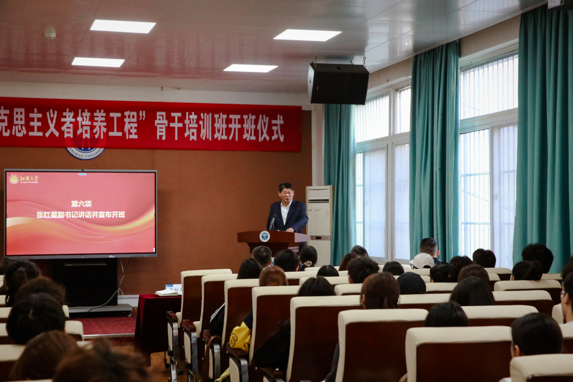 张红星在讲话中指出,本期“青马工程”骨干培训班在党的二十届四中全会闭幕之际举行,意义深远。他强调,青马工程是落实学校立德树人根本任务的重要举措,也是关系到党的事业后继有人的重要工程。他代表学校向全体学员表示祝贺,并对大家提出三点殷切希望:一是坚持理论学习,用习近平新时代中国特色社会主义思想武装头脑,筑牢信仰之基;二是坚持社会实践,深入基层了解国情民情,在实践中坚定“四个自信”;三是坚持理论联系实际,做到知行合一,在解决现实问题中提升综合能力。他勉励全体学员坚定信念、实学实干,在中国式现代化建设的征程中展现江大青年的担当与作为。