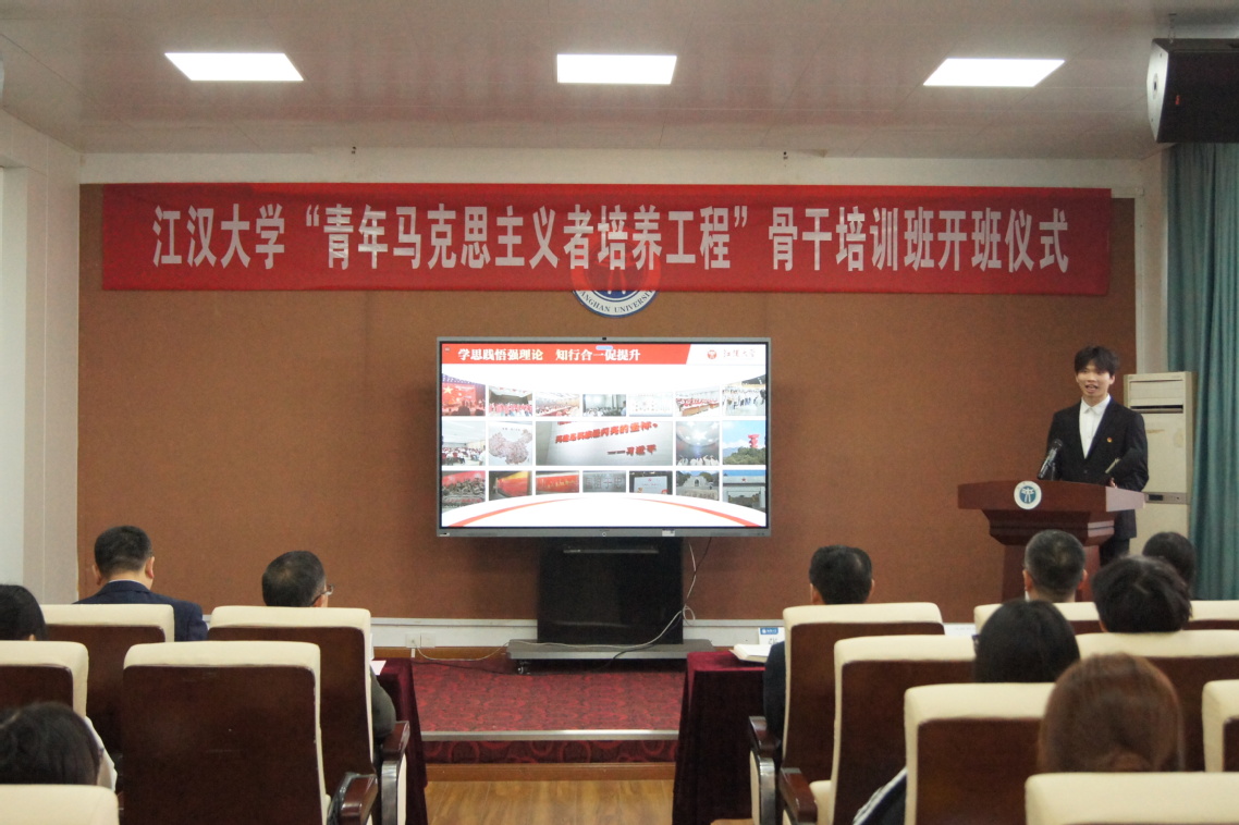 江大新闻网讯 10月23日下午,江汉大学“青马工程”第十一期骨干培训班开班仪式在师生活动中心110报告厅举行。党委副书记张红星及校“青马工程”指导委员会相关部门和学院领导、新聘任理论导师出席活动。校团委副书记江舟主持开班仪式。