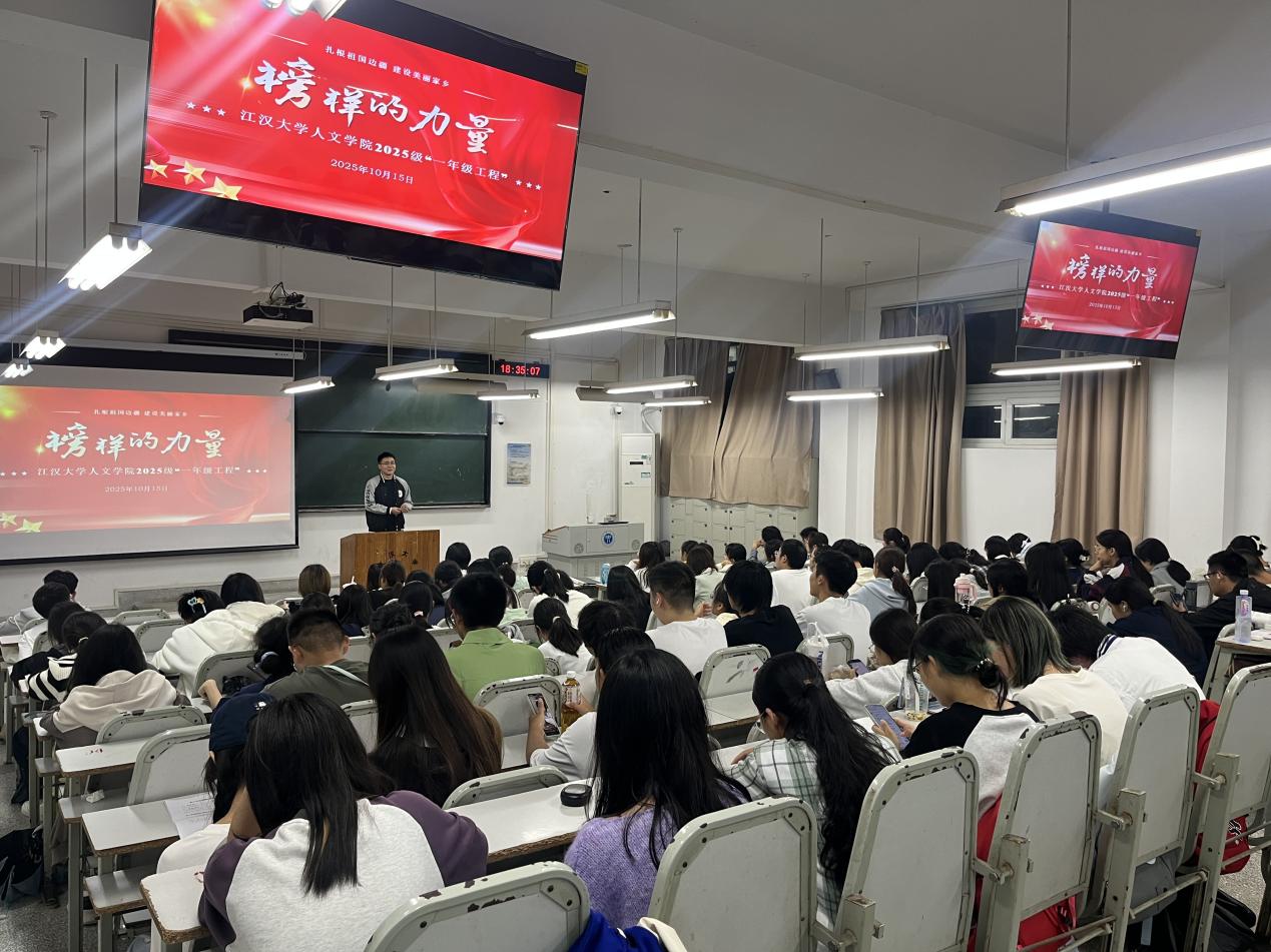 江大新闻网讯 近日,人文学院举办“学长归来”校友分享活动,邀请2024届汉语言文学专业校友、第十五届“感动江大人物”伍鸿宇返校,为2025级新生作成长规划与就业实践专题分享。