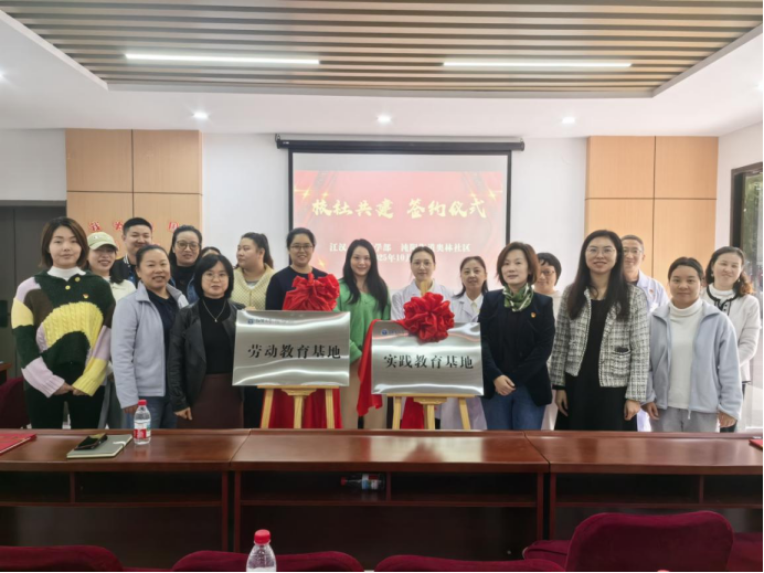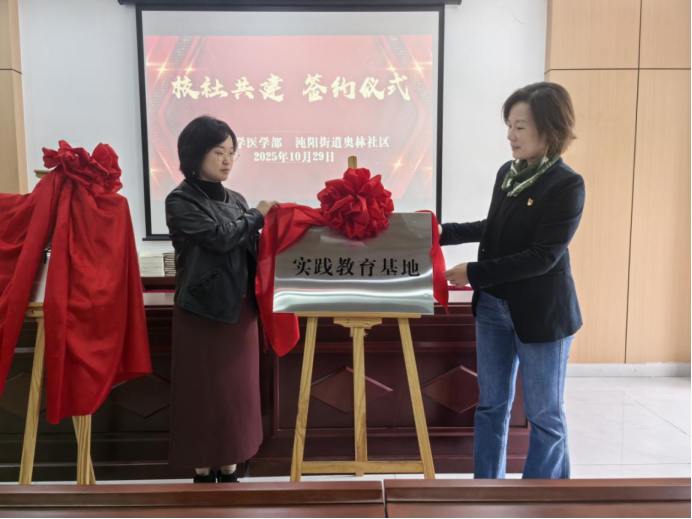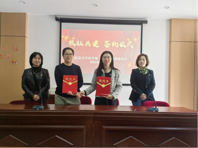 医学部与奥林社区举行“校社共建”合作协议签约仪式。双方将围绕党建联建、健康服务、人才培养、科研合作等方面开展长期深度合作,把高校的智力资源和组织优势,转化为社区居民实实在在的获得感与幸福感。根据协议,奥林社区将成为“江汉大学医学部实践教育基地”和“江汉大学医学部劳动教育基地”,医学部党委常务副书记黄颖斌和奥林社区党委书记熊佳静共同为基地揭牌。