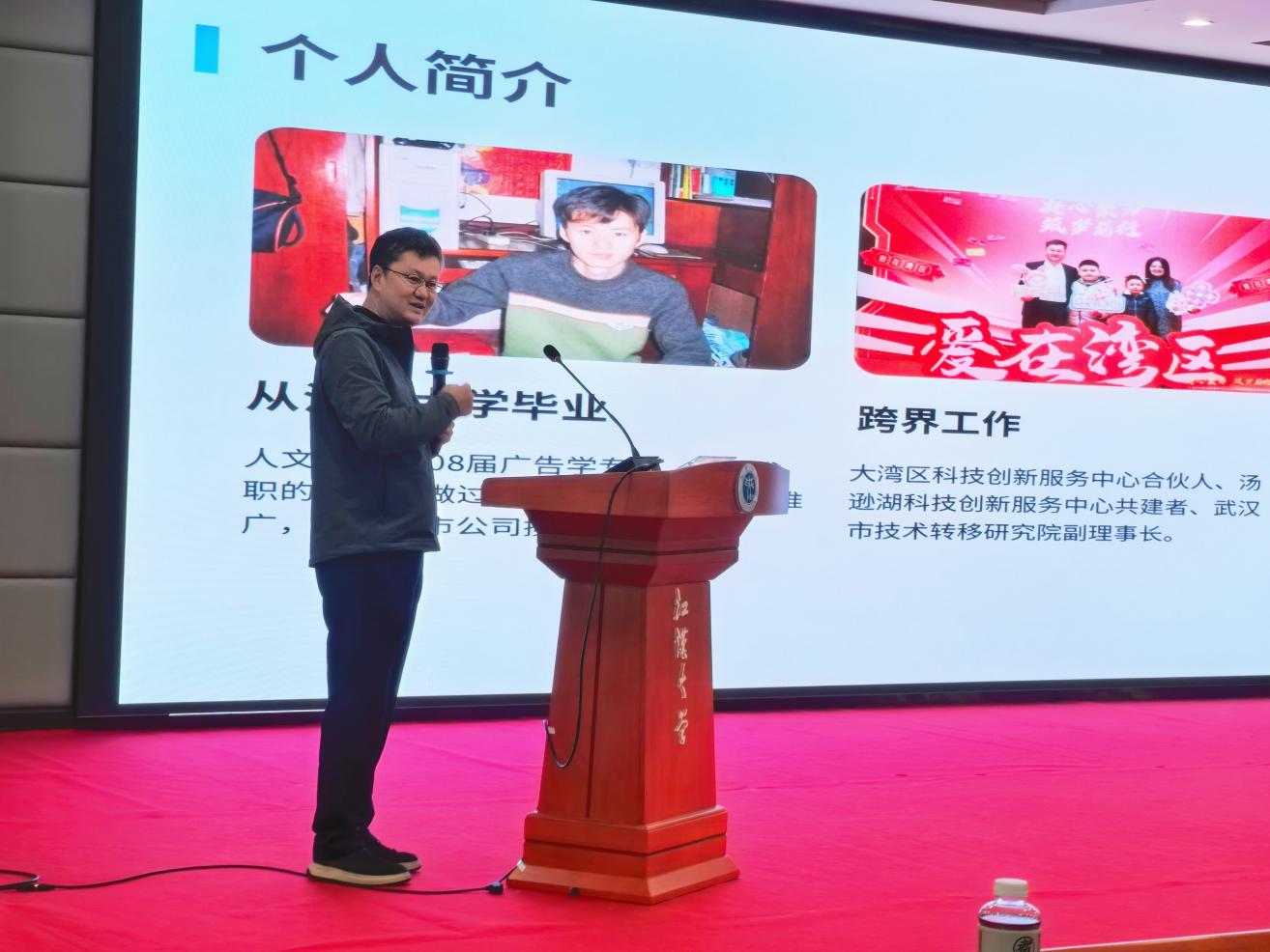 邢宝伟以“跨界成长”为主线,回顾自己从江大校园出发,一步步迈向科技创新服务前沿的奋斗历程。他曾深耕品牌策划与市场推广领域,在多家企业历练中积累了丰富的实战经验,在负责上市公司人才培养工作期间,系统构建了一套模式化人才培育体系。如今,邢宝伟已成长为大湾区科技创新服务中心合伙人、汤逊湖科技创新服务中心共建者,并担任武汉市技术转移研究院副理事长,活跃于武汉地区科技成果转化一线,成为推动产学研融合的重要力量。