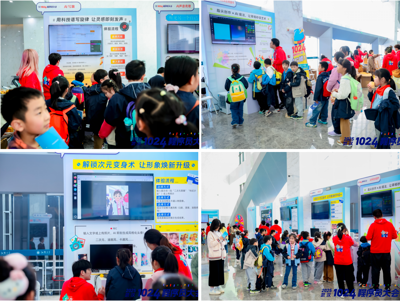 让更多学生感知AI、应用AI、掌握AI,本次大会期间,专门举办“AI大模型体验主题活动”,吸引了江汉大学实验小学、实验中学的200名“小小AI探索员”到场参与。