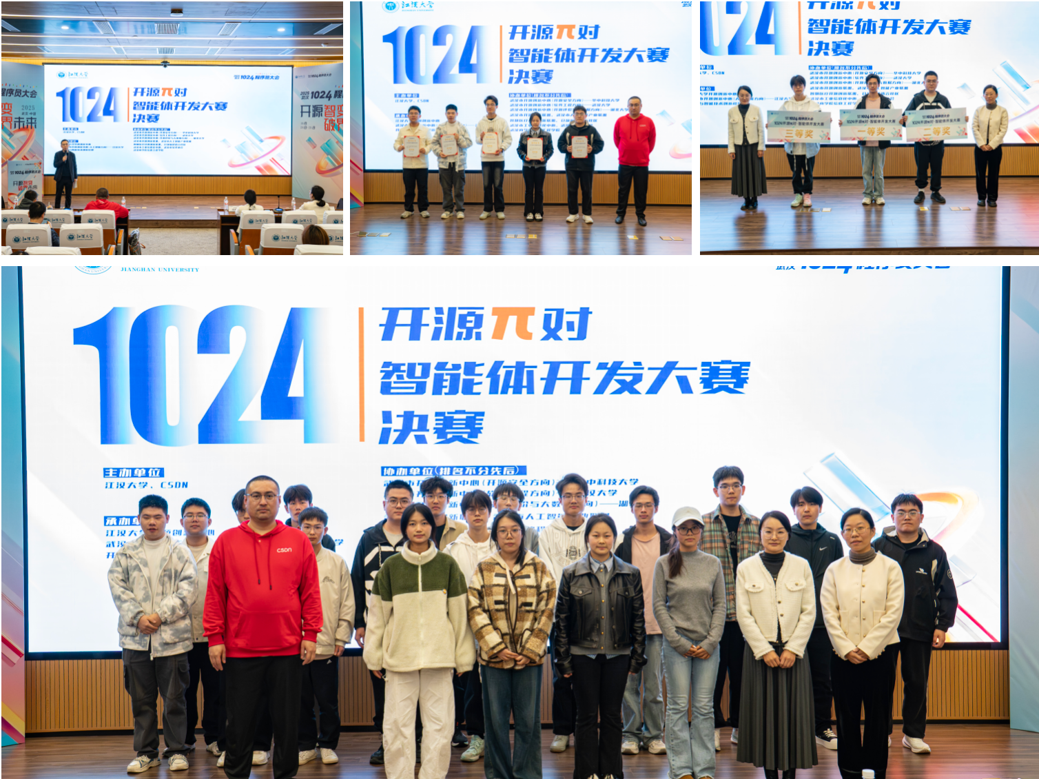 大会期间,高校AI创新成果集中亮相,由江汉大学开源创新中心主办“1024开源π对·智能体开发大赛”决赛与颁奖活动举办。