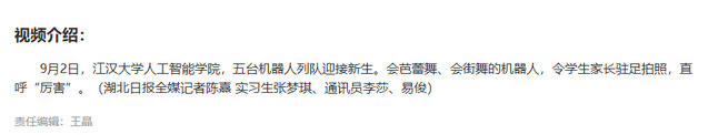 9月2日,江汉大学人工智能学院,五台机器人列队迎接新生。会芭蕾舞、会街舞的机器人,令学生家长驻足拍照,直呼“厉害”。