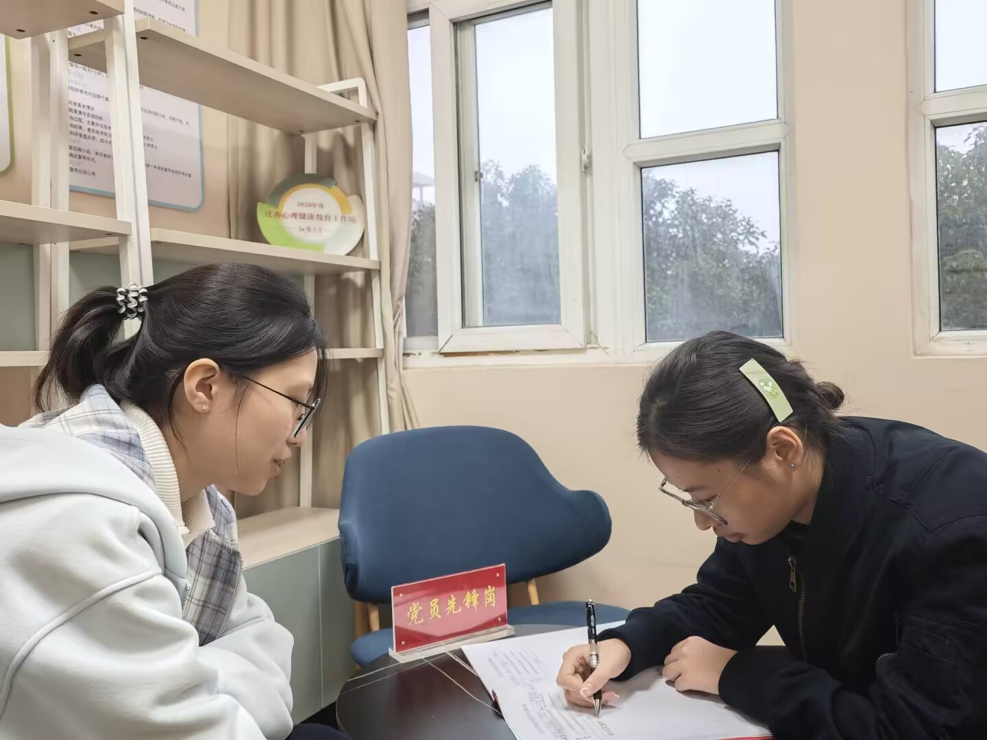 学院在南四公寓创办红色物管站,在J01教学楼打造阳光小筑心理工作站,在公寓和教学楼均设立“党员先锋岗”,并对“党员示范寝室”进行挂牌,构建起“站—岗—室—区”四位一体的党员先锋责任体系。本学年,先锋岗累计值班百余次,协调解决寝室矛盾、公共卫生等问题20余次,切实发挥了党员服务师生的先锋模范作用。同时依托“红色物管站”打造浸润式思政育人平台。仅本学年就开展“师生同上思政课”3次、“红色文化进公寓”主题活动2场,组织辅导员、班主任、专业教师深入公寓谈心谈话50余次,将思政教育有机嵌入学生日常,筑牢了学生社区的思想堡垒。