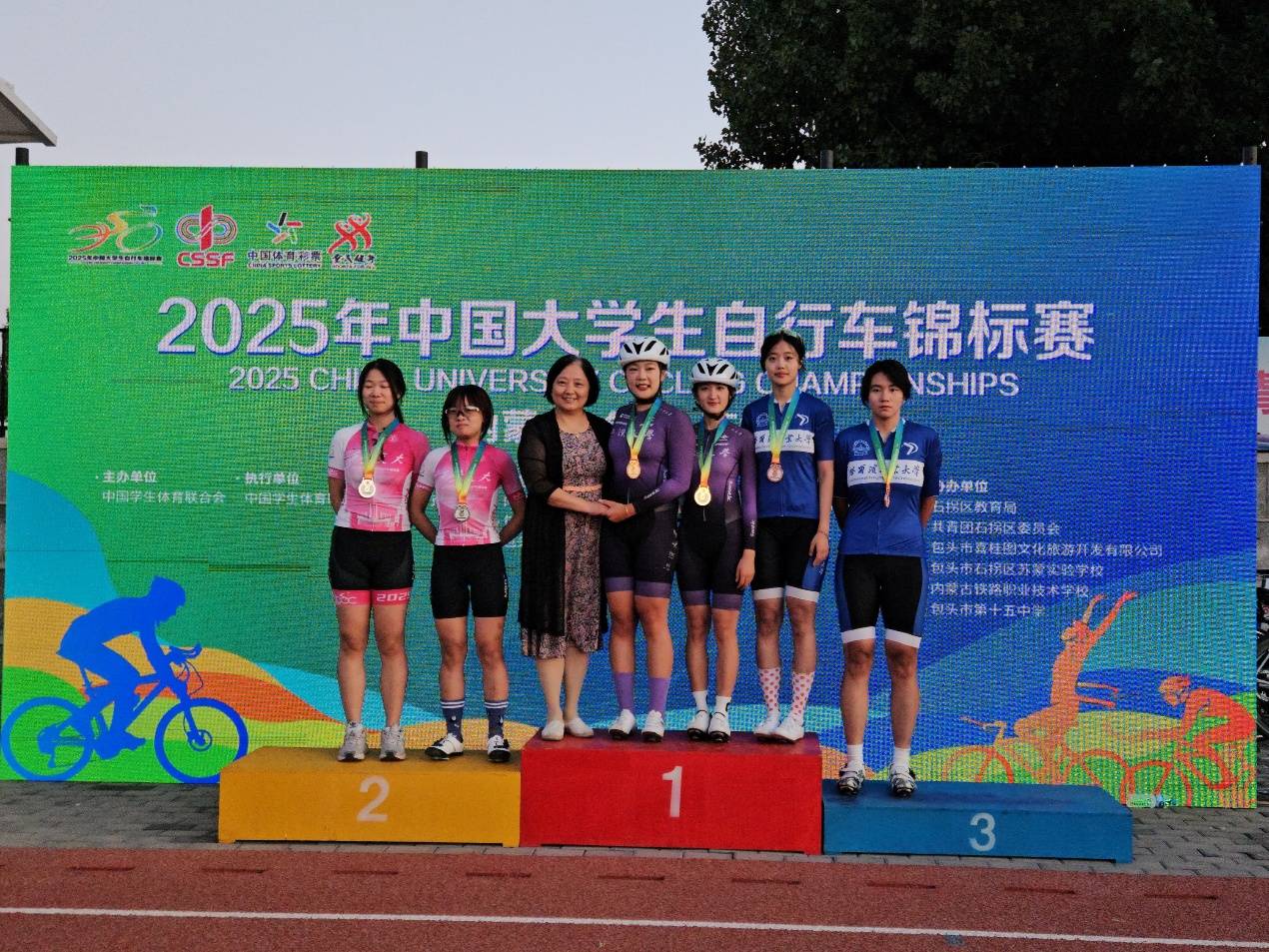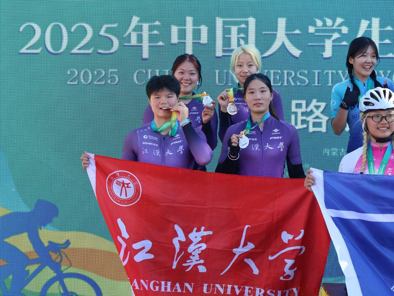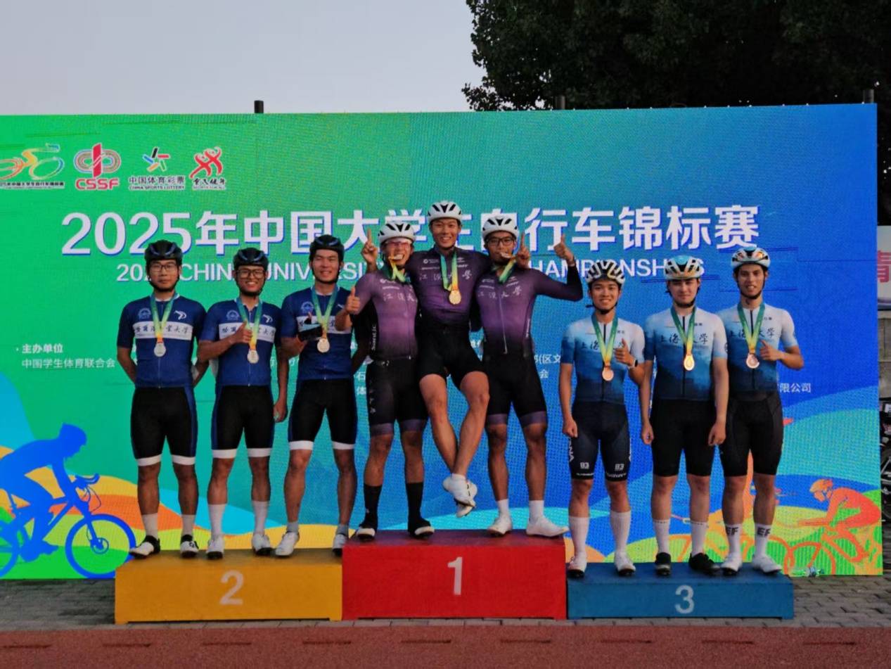 7月23日,2025年中国大学生自行车锦标赛在内蒙古落下帷幕,江汉大学代表队17名队员经过数日鏖战,勇夺4枚金牌、5枚银牌、1枚铜牌。