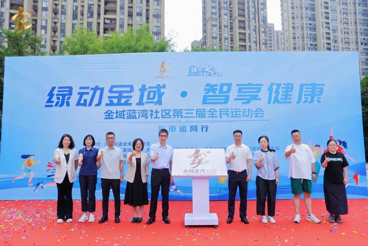 院、江汉大学体育学院和武汉商学院体育学院的大学生代表带来精彩纷呈的彩带龙、啦啦操、舞龙舞狮等表演;武汉经开区实验小学学生代表展现充满活力的街舞风采;碧湖卫生院提供全程医疗保障;万科金域蓝湾物业服务中心与万科金域蓝湾小区业委会确保后勤服务有序进行。