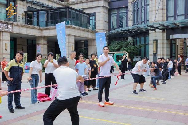 紧接着,香奈儿广场各运动项目依次有序开展,掌声与欢呼声此起彼伏。趣味运动会、老年项目及拔河、跳绳、羽毛球、乒乓球等赛事,吸引不同年龄阶段的居民同场竞技、交流情感。运动会还创新采用组团对抗形式,组织社区以7个组团为参赛单元,在篮球、拔河、跳绳等集体项目中开展比拼。各组团居民积极训练备战,自发组织啦啦队,在比赛中展现出强烈的集体荣誉感和团队精神。极大地增强了院落居民间的凝聚力,激发了社区内部活力。