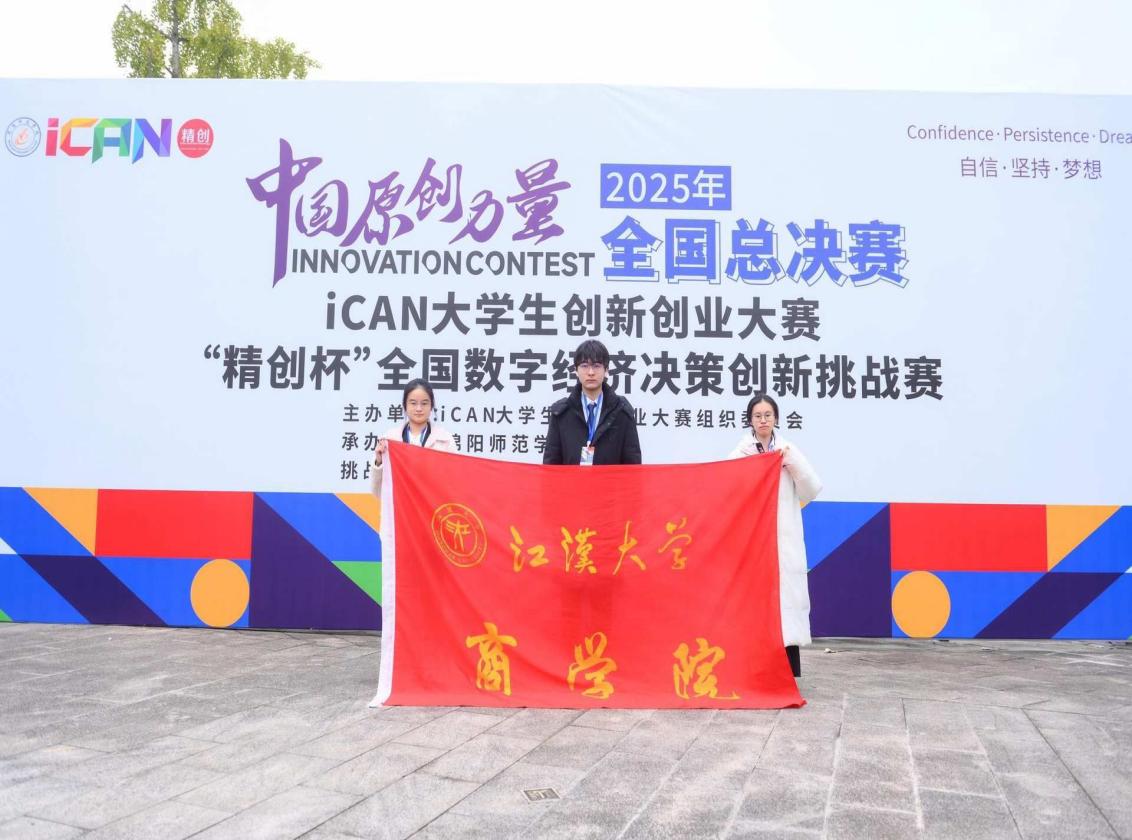 江大新闻网讯 11月22至23日,2025年全国大学生创新创业大赛“精创杯”全国数字经济决策创新挑战赛全国总决赛圆满落幕。江汉大学创智无限协会范昕禾、陈鸿飞、高彤三位同学组成的学生团队,斩获大赛全国一等奖。