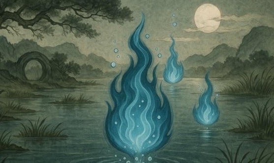 潮湿的沼泽地带与幽暗的墓地,偶尔飘忽的幽蓝冷焰,被称为“磷火”。