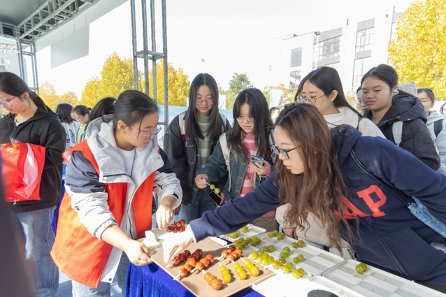 该校的食堂师傅们精心准备的桂花米酒汤圆、冰糖葫芦、烤串等食品吸引师生驻足。另一边的非遗文化展区,学生们也排起长队,在扬子江食品、扬子江乳业、德华楼、小桃园鸡汤、老谦记豆丝和熊太婆原汤水饺的展台前,争相品尝极具汉味特色的美食。老谦记传统豆丝制作技艺第三代传承人沈祖学准备了600份豆丝,全部被免费领取。“豆丝制作技艺传承至今已有百余年历史,去年获评省级非遗项目。”沈祖学介绍。来自湖北荆州的大一新生梅轶秋开心地说:“文明餐桌进校园宣传活动将美食市集搬进校园,让外地大学生就近体验到原汁原味的武汉美食文化。”