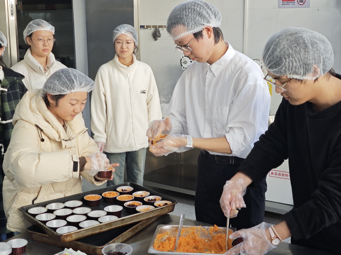 带着采摘的新鲜红薯,同学们走进食堂,在厨师的指导下开展烹饪实践。大家分组协作,将田间成果转化为一道道可口美食。金黄酥脆的苕面窝、香气扑鼻的芝士焗红薯、清甜润喉的银耳红薯汤……食堂里香气弥漫,笑语不断。“有滋有味”的烹饪实践课,不仅让同学们掌握了生活技能,也体会到了“劳动创造美好生活”的成就感。