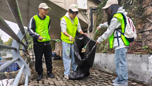 10月26日,在武汉市蔡甸区张湾街道新民社区,江汉大学绿舟环保志愿者协会开展清源河巡河行动。
