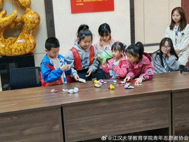 10月25日,在武汉市蔡甸区沌阳街道金域蓝湾社区,江汉大学教育学院青年志愿者协会联合举办“小小乐修匠成长纪”主题日活动。