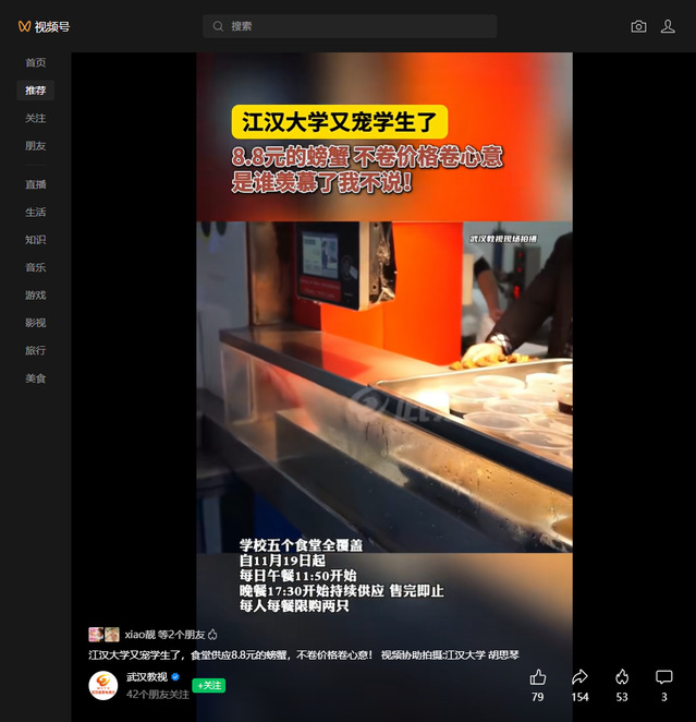 江汉大学又宠学生了,食堂供应8.8元的螃蟹,不卷价格卷心意!