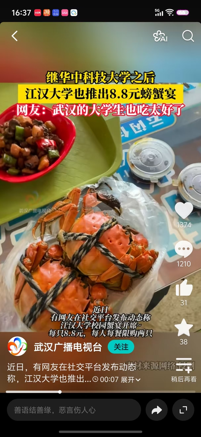 江汉大学推出螃蟹宴