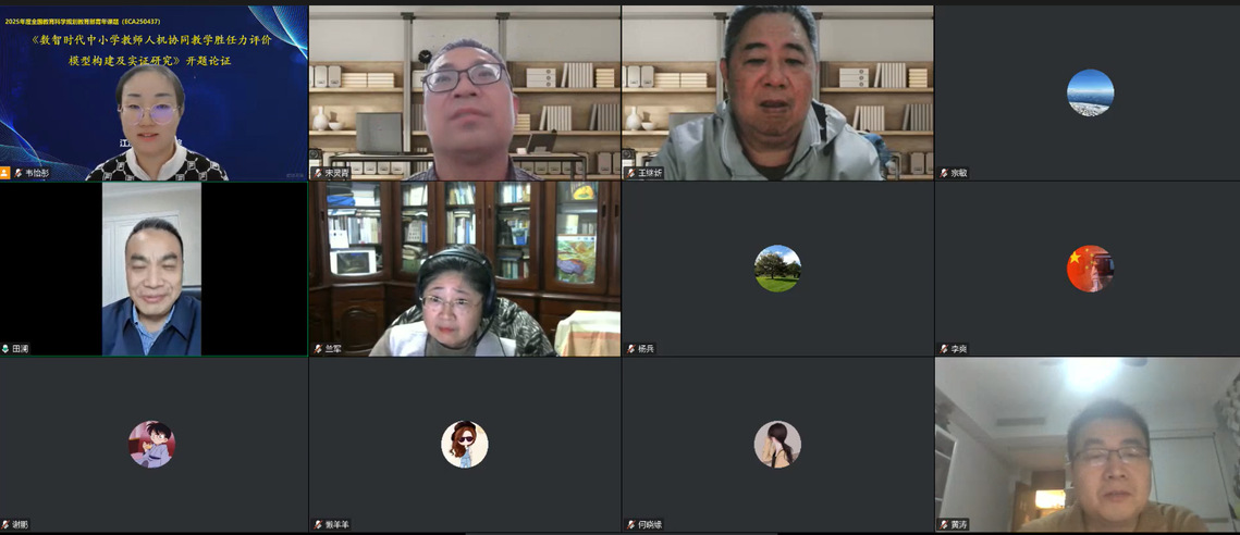 由韦怡彤博士主持的2025年度全国教育科学规划教育部青年项目《数智时代中小学教师人机协同教学胜任力评价模型构建及实证研究》开题论证会在线举行。该课题聚焦数智时代教师角色转型核心需求,拟构建中小学教师人机协同教学胜任力的评价指标体系与测评方法,并探索出教师人机协同教学胜任力的提升策略,推动教师从“技术应用”向“人机协同”的能力跃迁。专家组认为该课题紧密契合国家教育数字化战略需求,研究思路清晰、技术路线可行,并对课题的深化实施提出建设性意见。
